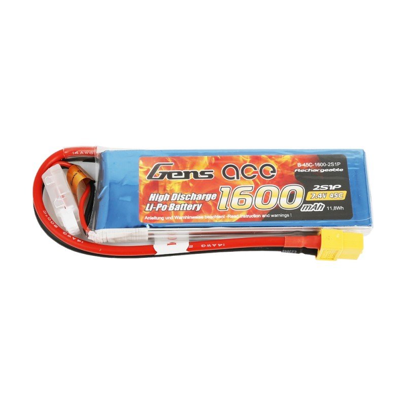 Gens ace 1600mAh 7,4V 45C 2S1P Lipo Battery Pack with XT60 plug